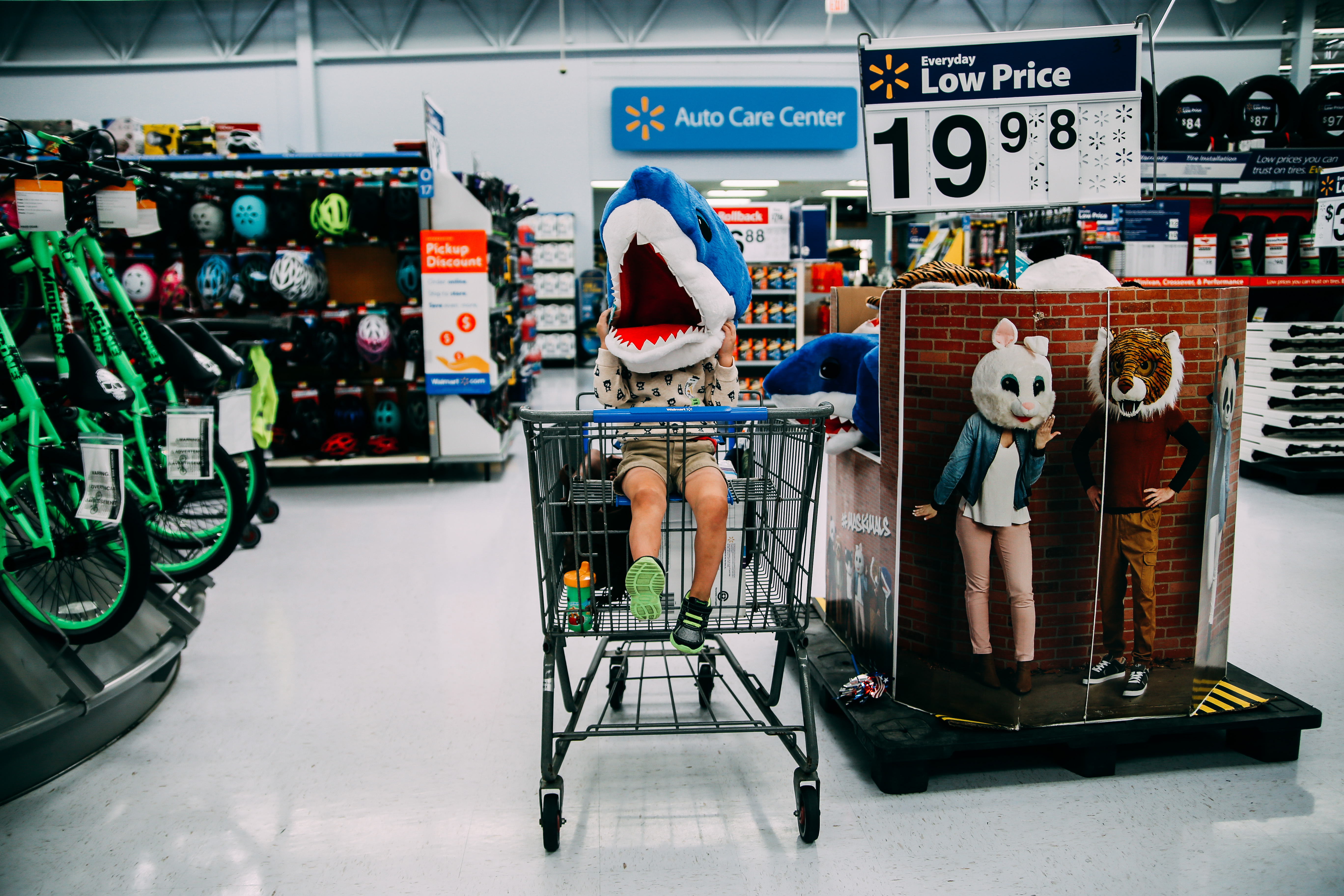 We also may have gotten a little weird with the balloons. And, yes, if you look closely he’s trying to steal a sweatshirt. I wanted to try it on him to see if it fit and he refused to take it off. Can you get kicked out of Wal-Mart? Surely this is tame. Yes, we paid for the sweatshirt. I may have had to bribe him with M&Ms to get the tag off so she could ring it up.