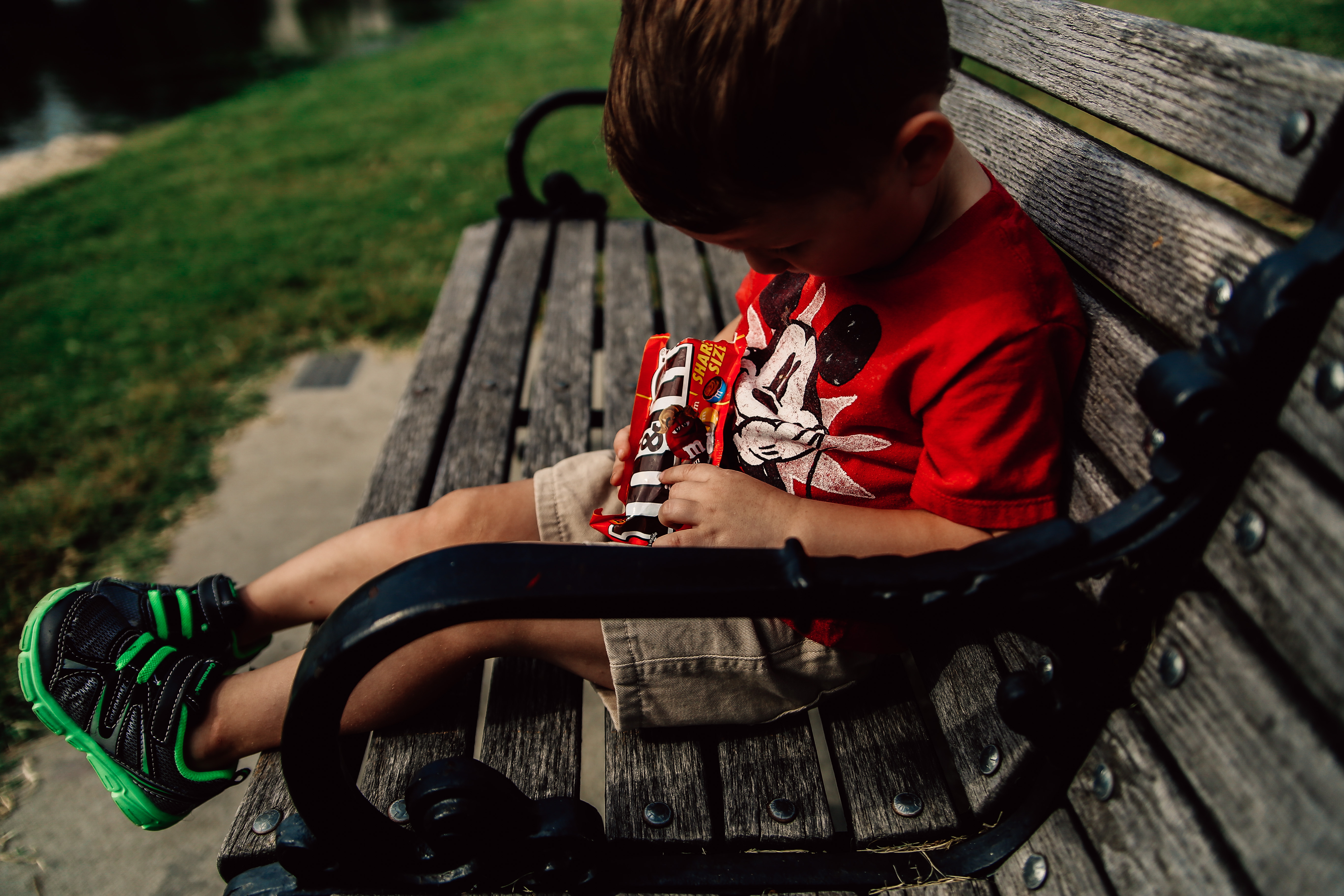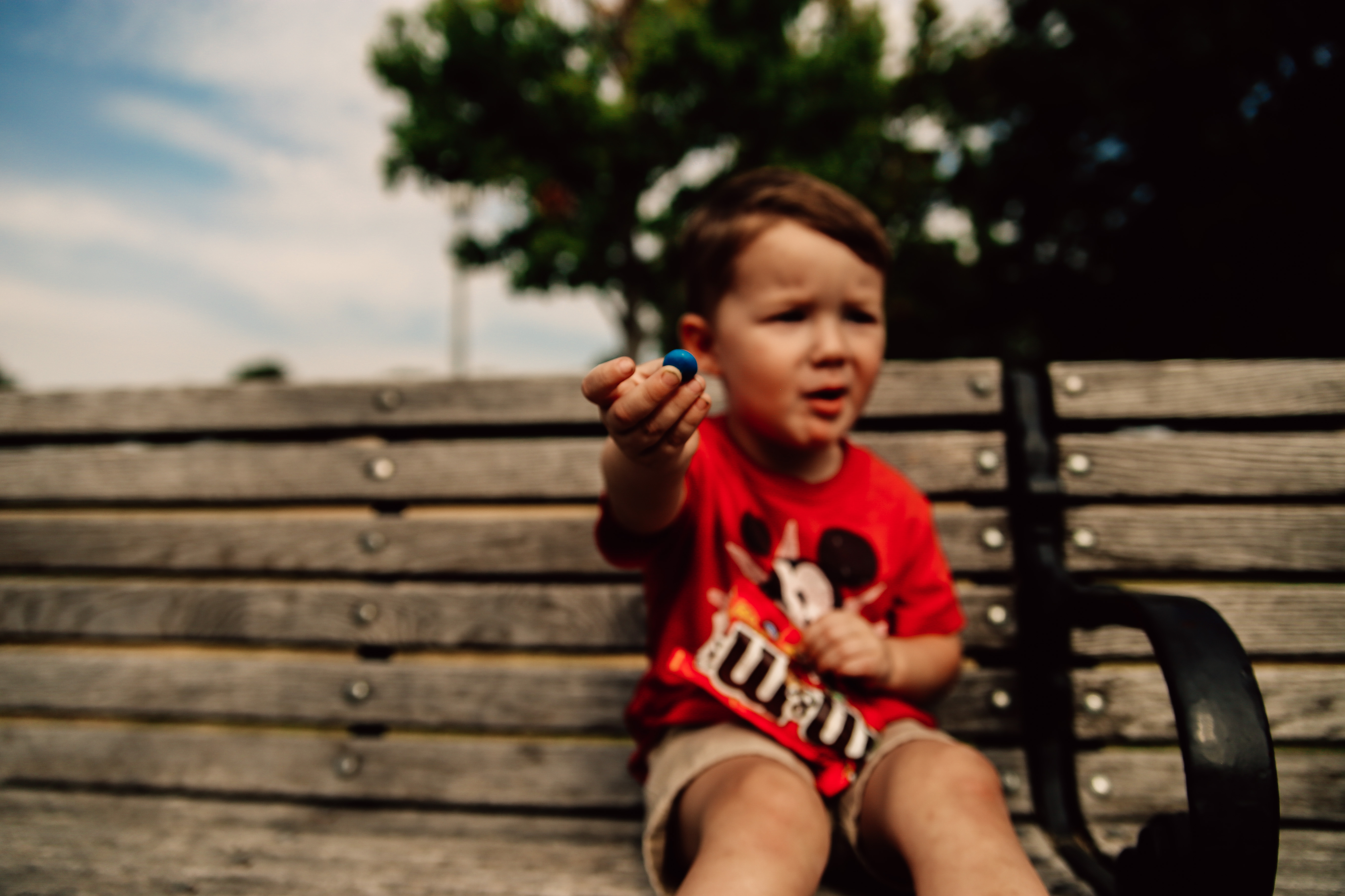 We decided to leave the dry cleaners and head across the street to Sar-Ko-Par Park. and share our M&M snack.