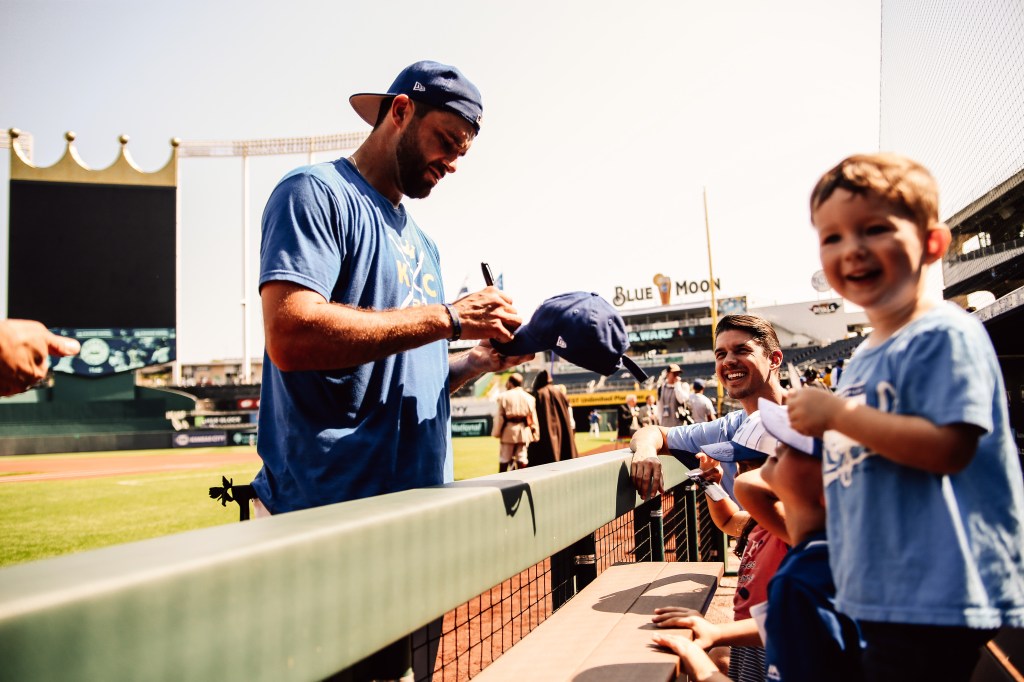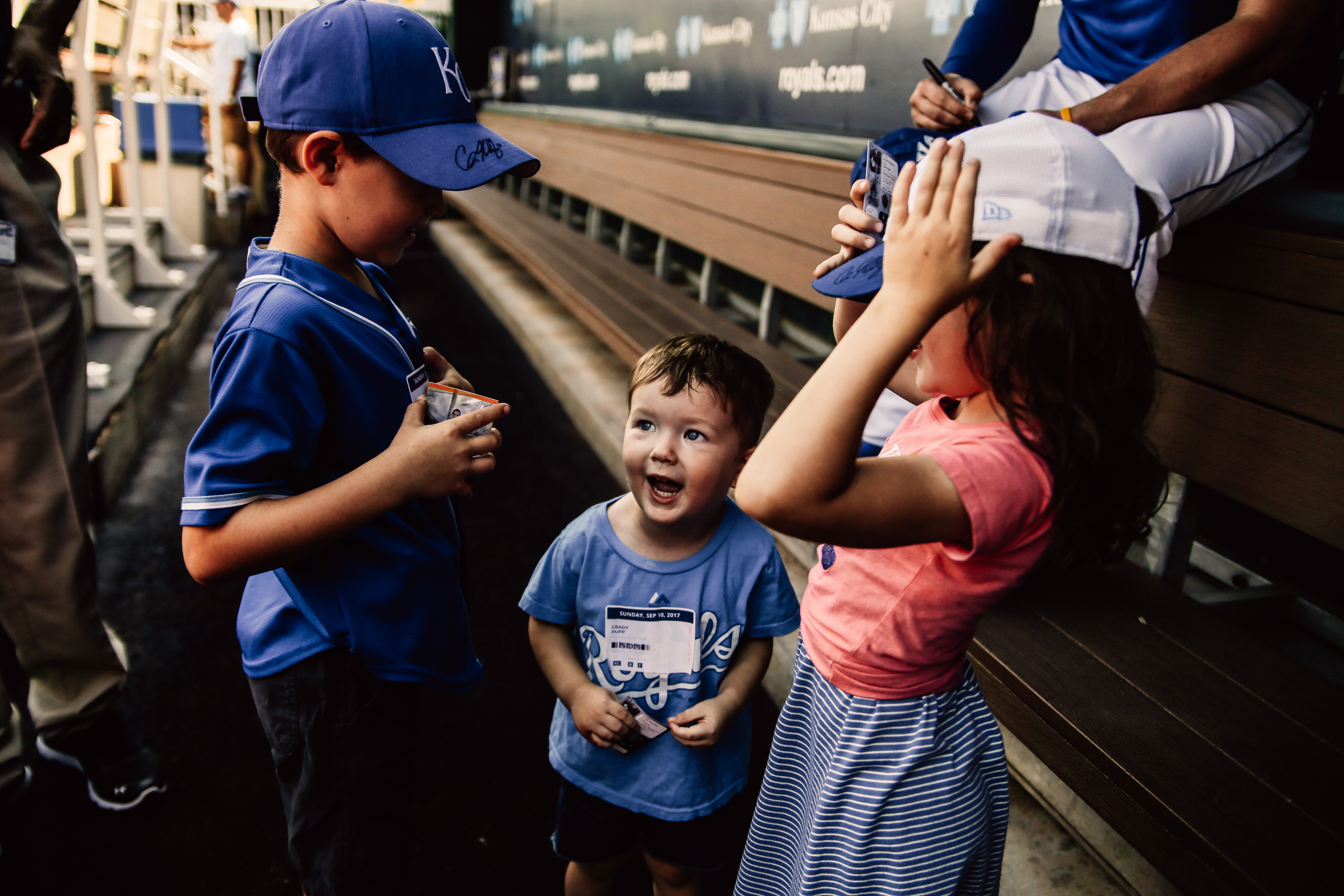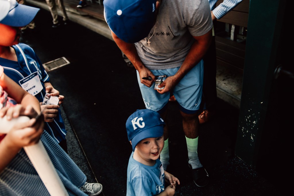I couldn’t stop smiling watching Grady this time. He’s so little, but I felt like he understood what was happening. We watch the Royals and talk about the players all the time in our house so he’s definitely caught on. His excitement when one of the players would take his hat to sign absolutely made my day.