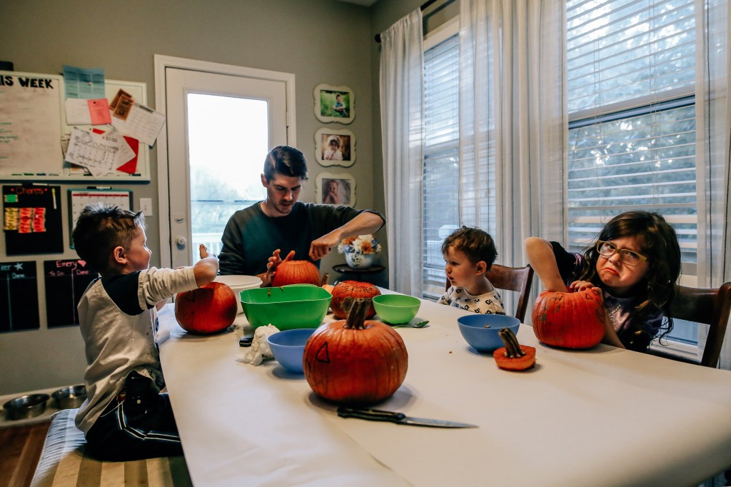 And guess what? We did it! We carved those darn things. It was a hot mess of complaining and yucky pumpkin guts, but we did it. Maybe one more tradition we can actually handle and fit into our busy fall.