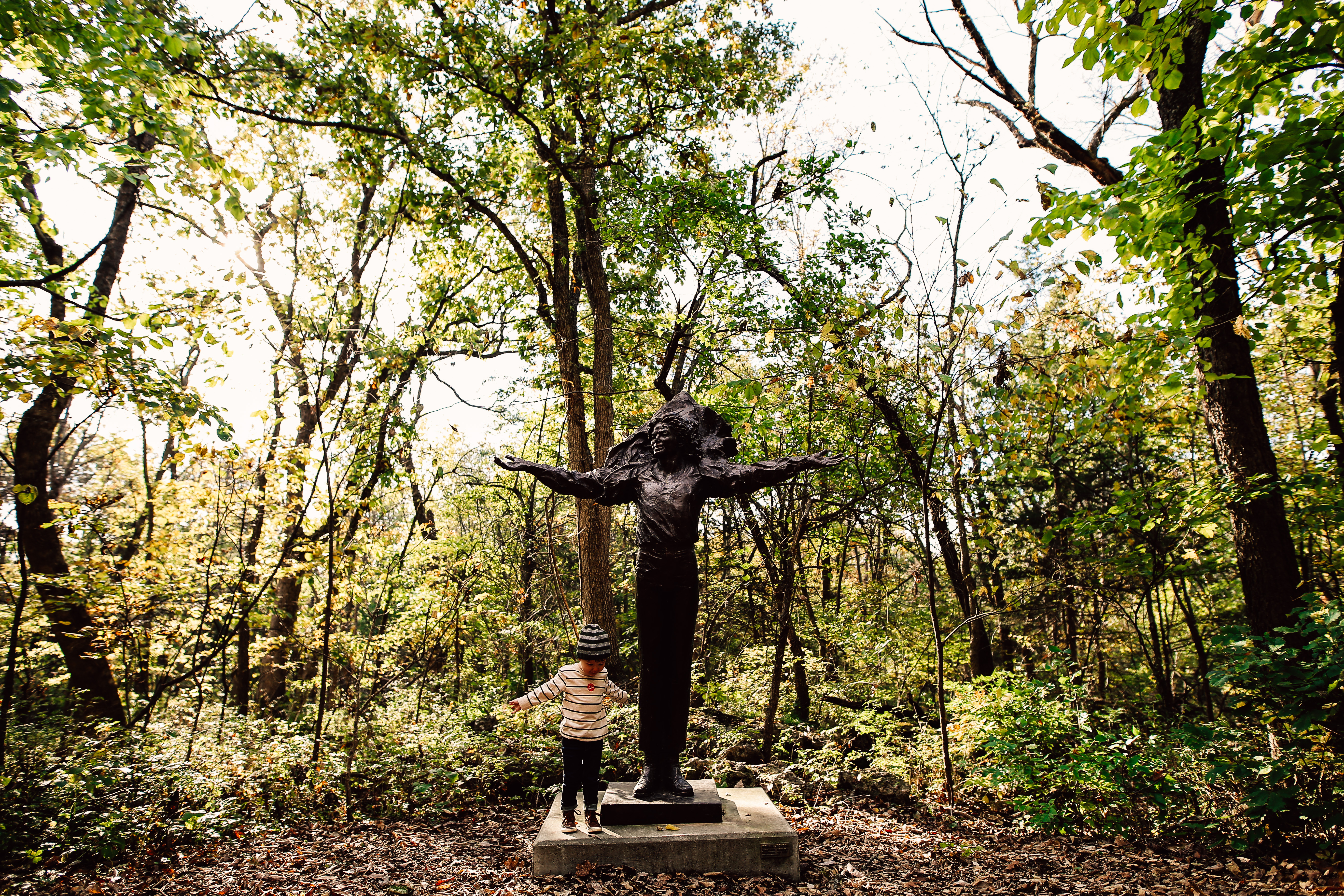 We first decided to walk through the statue trail and collect sticks. Lots and lots and lots of sticks. Oh, and a quick break to fly like Micheal Jackson {yea, I’m not sure either}.