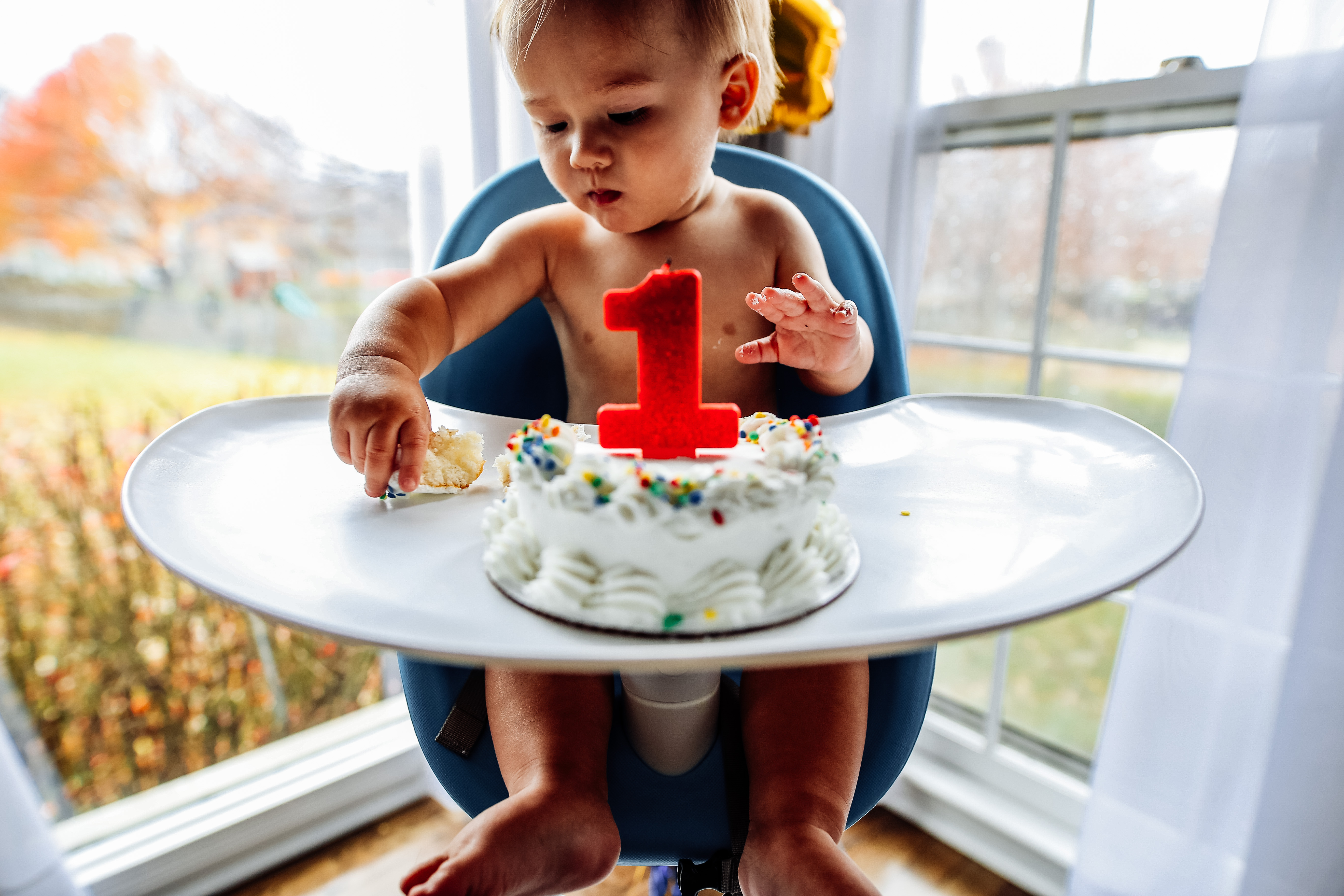 And his not so favorite cake. I’ve seen a lot of babies smash cakes and cry about cakes, but he was a rare breed. Complete disinterest in cake. We finally discovered that maybe it was just the frosting that was so intimidating because once we wiped that away, he did start to dig in a little bit. Just a little bit, though.