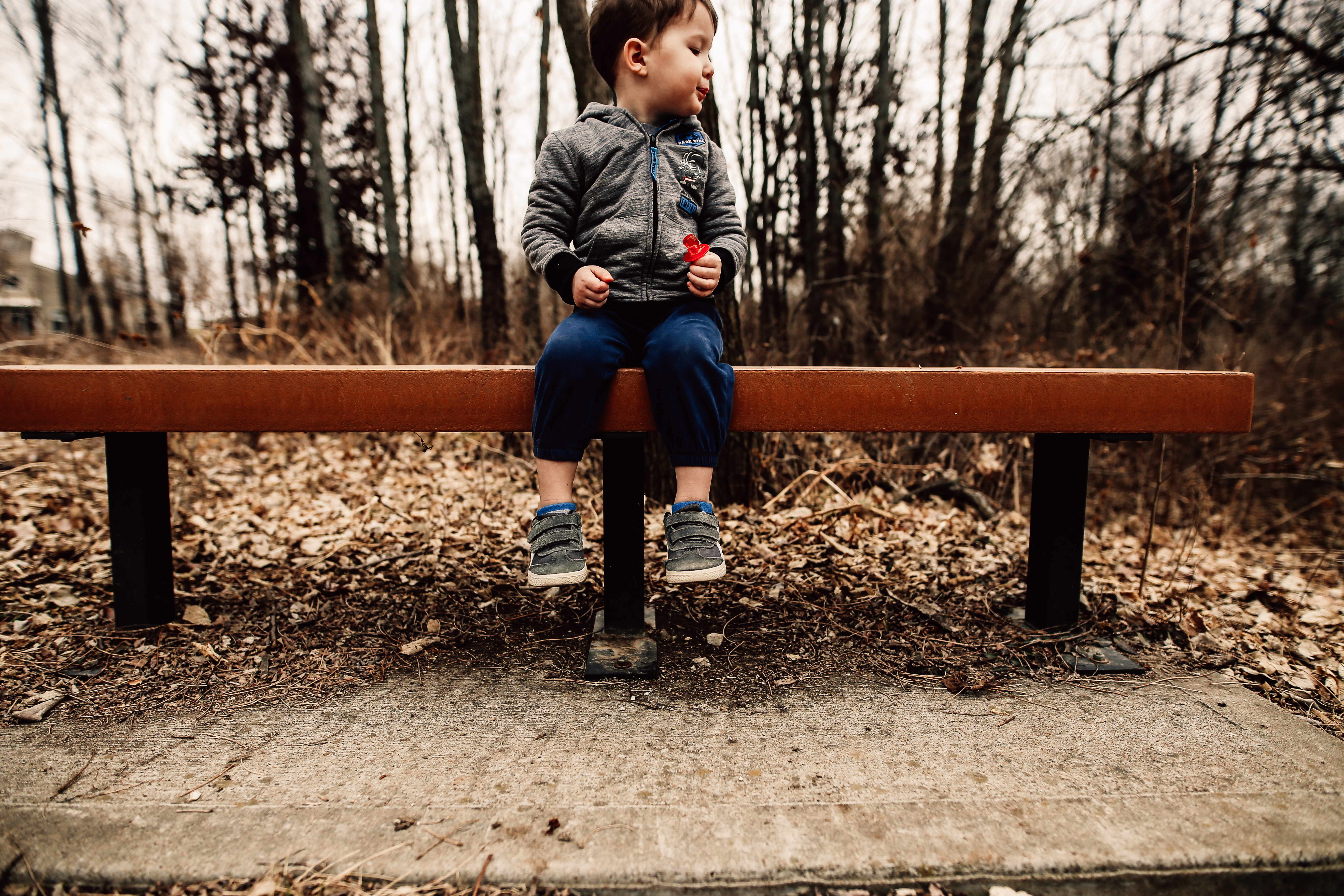 We hiked through the woods, tried to climb trees and sat on every bench we could find. We circled the pond and saw what seemed like hundreds of geese. Tiny man even had his first adventure in peeing in nature since we were a long ways from a bathroom with a tiny, toddler bladder. Then, of course, when he saw all that goose mess he asked if he could also poop in nature. His toddler logic makes sense, but, no, we hold that for the restroom.
