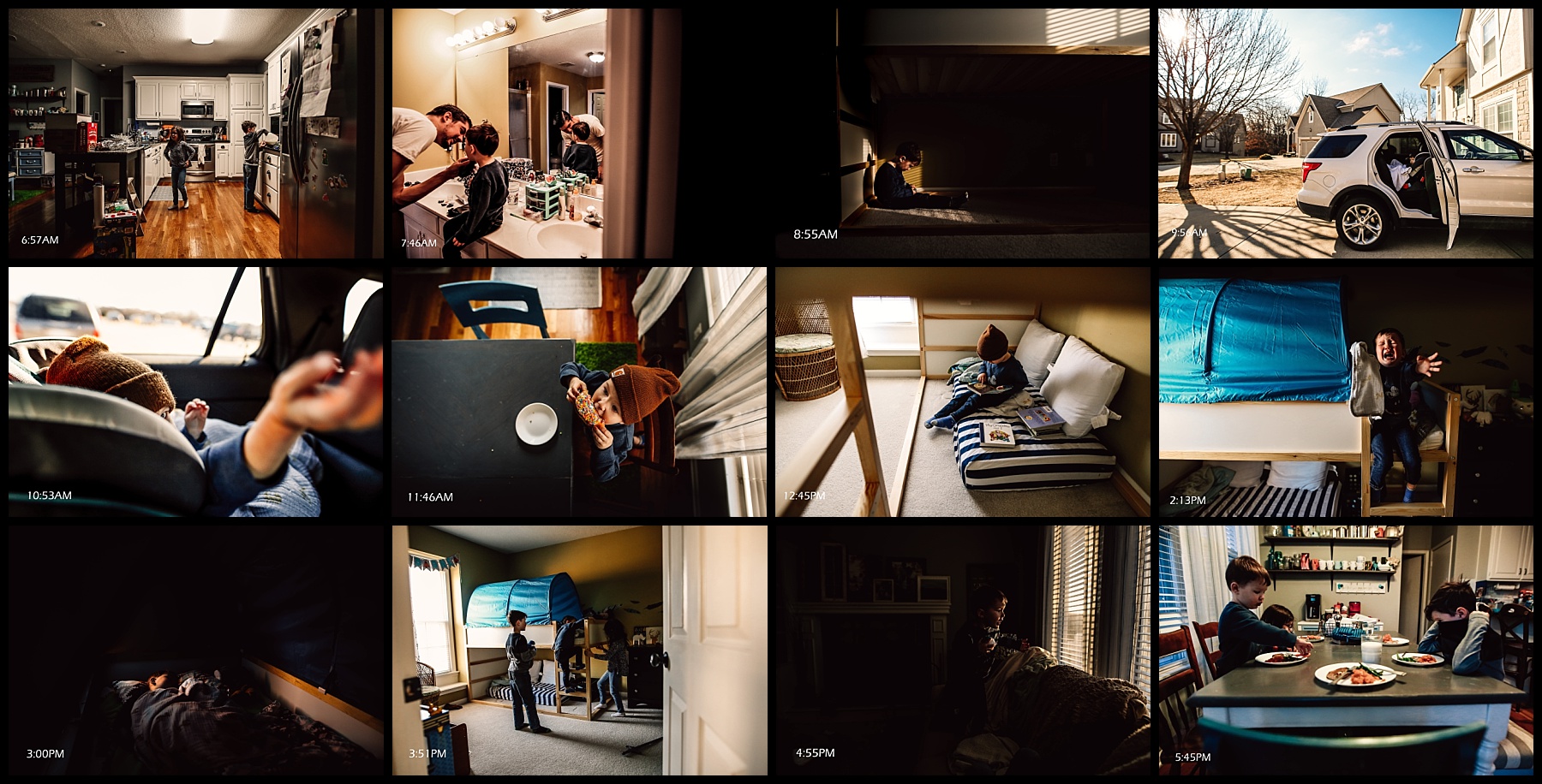 I chose to do 12 images in my collages. We’re normally awake and active for that long (at least) and, to be honest, the symmetry of 12 images in a collage just feels right. At the end of your day, sit down and look at everything you captured. Choose the images that speak to you the most. The images that really capture your story. Try to ignore the technical. Don’t just choose the “best” images from a composition/exposure perspective. Choose the moments; the moments that work together to tell the day’s story.