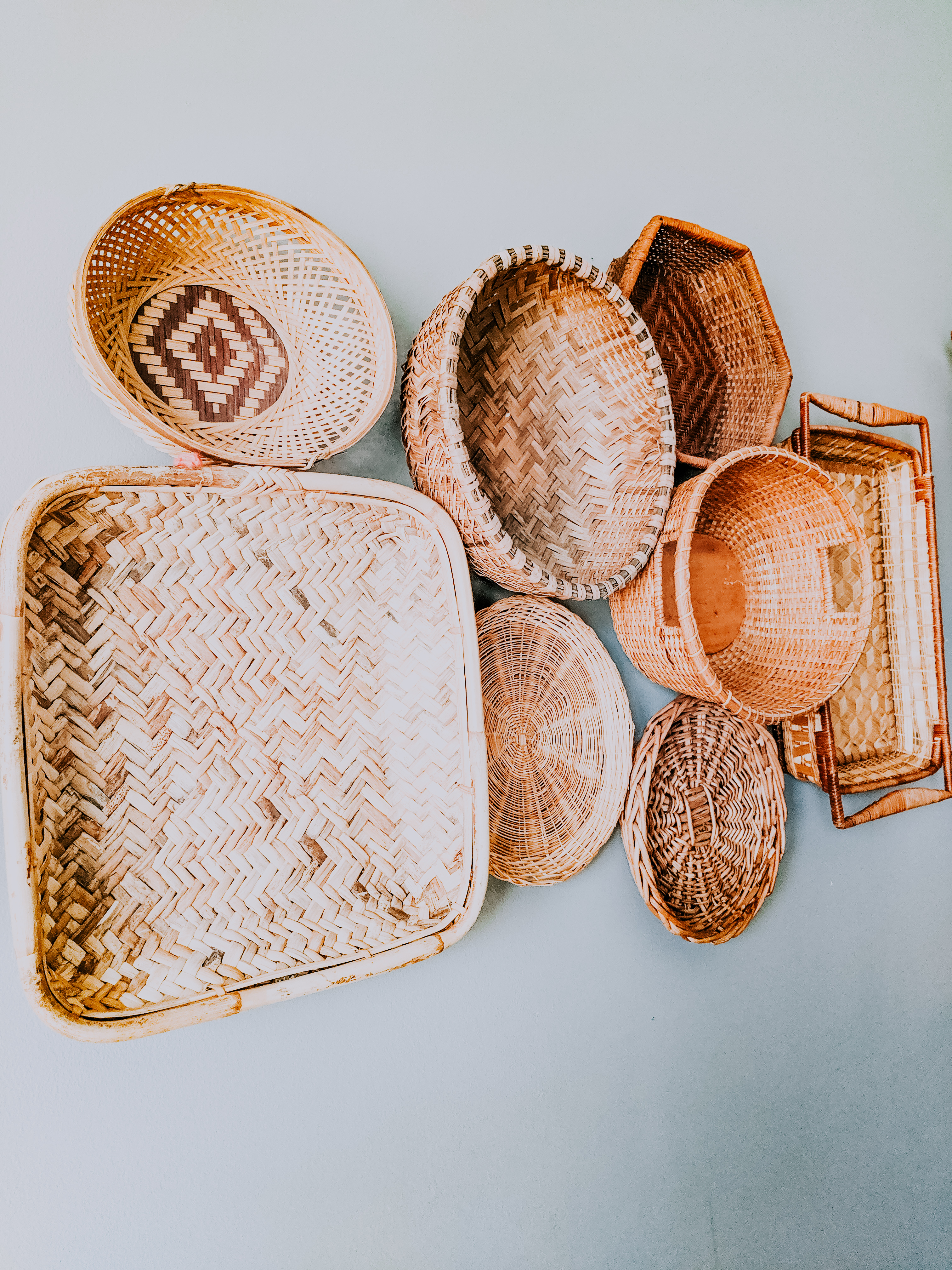Unless you’re new here, you know that I love thrifting. It’s like my therapy; wandering looking for a diamond in the rough. Last summer I started collecting baskets; different shapes and sizes. They’ve been sitting and waiting as I’ve slowly added to the stash and I decided that it was time to finally do something with them.